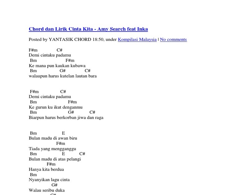 Gelora cinta Dm Gm A Dm Andai dipisah. Bulan madu di awan biru Fm Tiada yang menggangu Bbm Eb - C Bulan madu di atas pelangi Fm Hanya kita berdua Bbm Mengecap nikmat cinta G Yang putih tak terbanding C Sesuci embun pagi Fm Bbm Andai dipisah C Fm Laut dan pantai Fm Bbm Musnahlah ilham C Fm Hilang pedoman Fm Bbm Andai dipisah C Fm. Chord Kunci Gitar Lagu Cinta Kita - Inka Christie Bulan Madu di Awan Biru - Tribun Video.