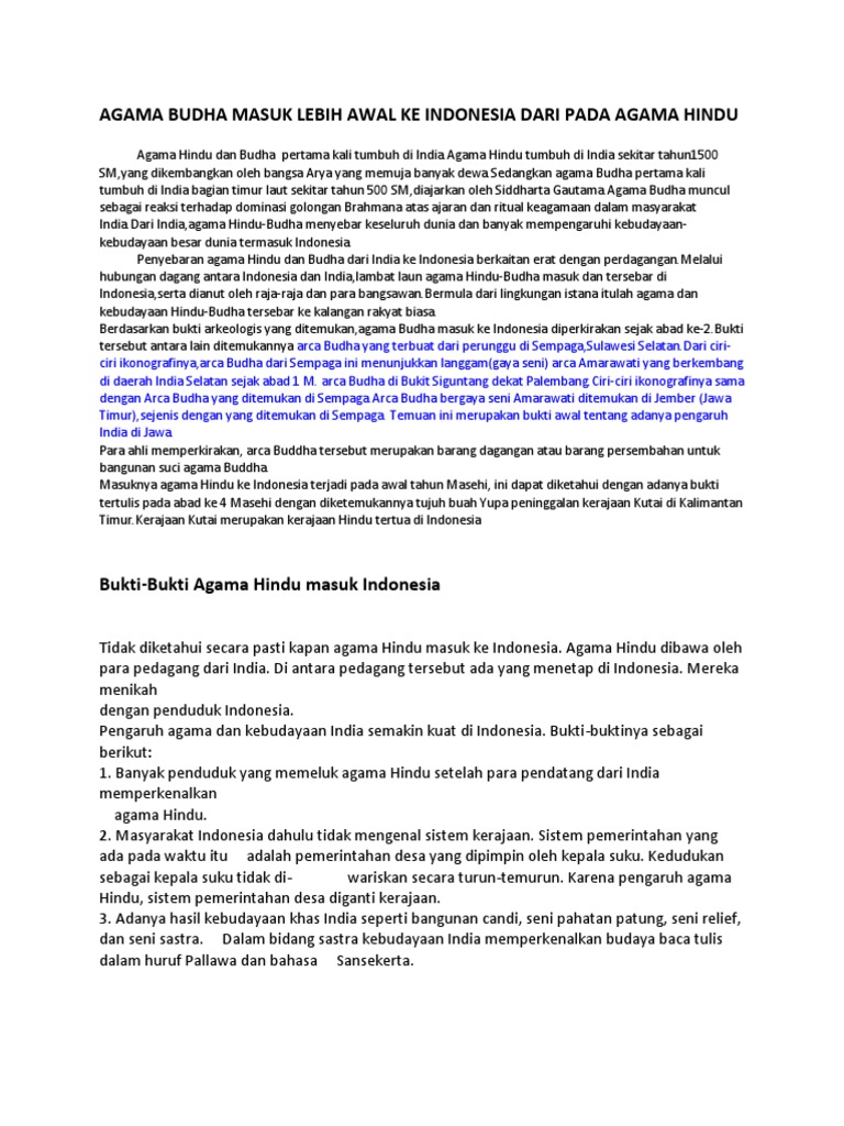 Bukti masuknya agama budha ke indonesia pada abad ke-5 m adalah. Di India aksara dan bahasa ini. Proses masuknya agama Hindu-Budha ke Indonesia tidak melalui proses yang mudah dan cepat. Masuknya Hindu dan Buddha di nusantara dimulai pada awal masehi melalui jalur perdagangan.